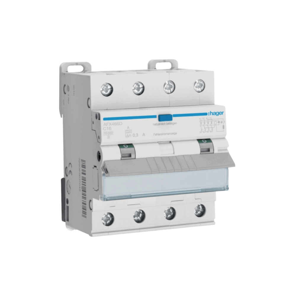 Der Fehlerstrom-Leitungsschutzschalter 4P 10 kA C-16A 300 mA Typ A erfรผllt die Anforderungen nach DIN EN 61009-1 (VDE 0664-20). Er kombiniert einen 4-poligen Leitungsschutzschalter fรผr 400 V Drehstromkreise mit einer integrierten Fehlerstromschutzschaltung in einem kompakten Gehรคuse. Eine blaue Test-Taste sowie eine gut sichtbare Fehlerstromanzeige erleichtern die Kontrolle. Der Schalter lรคsst sich einfach einzeln aus dem Phasenschienenverbund entnehmen und ist fรผr den nachtrรคglichen Anbau von Zusatzeinrichtungen geeignet. Zudem bietet er eine praktische Beschriftungsmรถglichkeit direkt am Gerรคt.