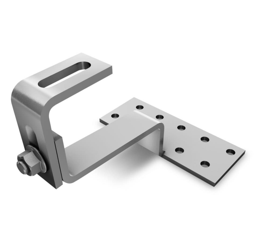 Zum Befestigen der K2 Systembauteile auf Dächern mit Pfannenziegeln. Bügel mit Langloch zur SolidRail Montage mit Hammerkopfschraube und Mutter M10.
